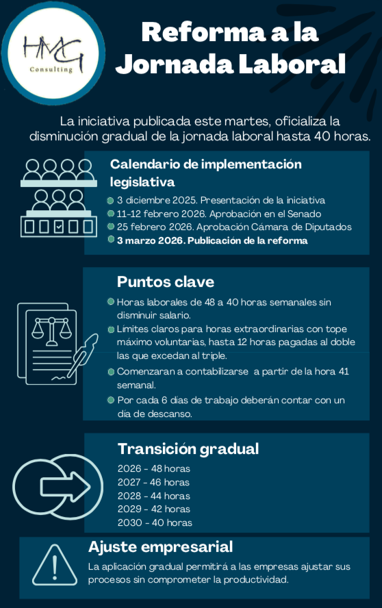 Al final este 04 de marzo de 2026 se publica la reforma en materia de Jornada Laboral, ahora a ajustar sistemas y presupuestos para estar listos y empezar la reducción en 2027.